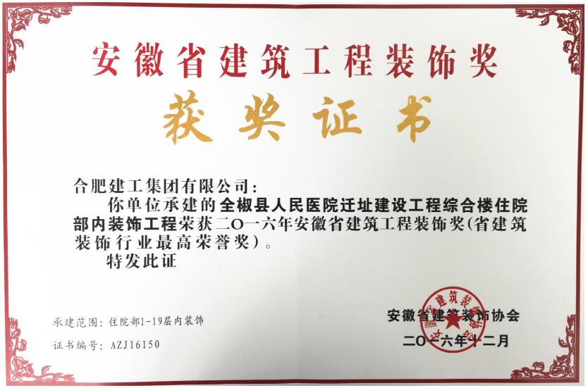 2016年安徽省建筑工程裝飾獎(jiǎng)