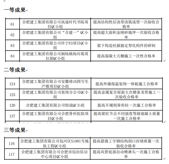 喜訊!合肥建工斬獲10項(xiàng)省級QC成果獎
