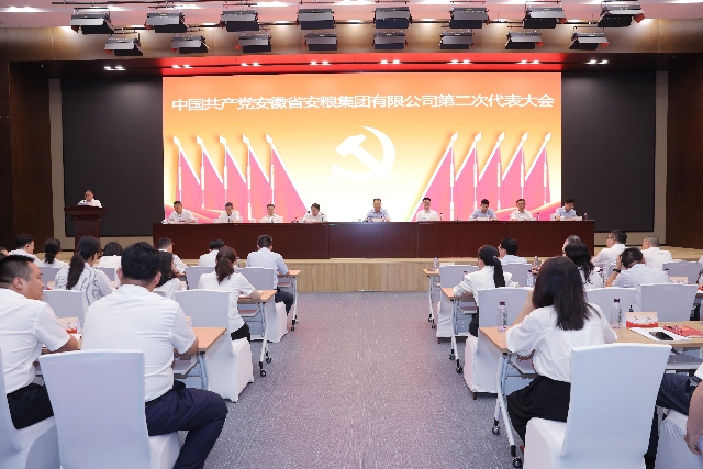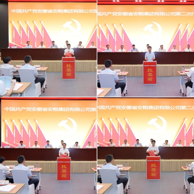 2025年8月29日,中共安徽省安糧集團有限公司第二次代表大會順利召開,會議選舉產生新一屆委員會和紀律檢查委員會。安糧集團黨委班子成員、本部及下屬子公司89名黨員代表參加會議,安徽國貿黨委副書記劉為到會指導并講話,會議由安糧集團黨委副書記、總裁楊曉剛主持。