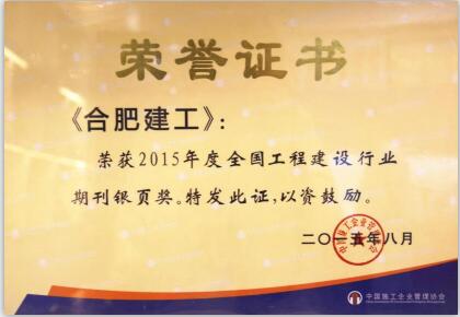 2015年度全國(guó)工程建設(shè)行業(yè)期刊銀頁獎(jiǎng)